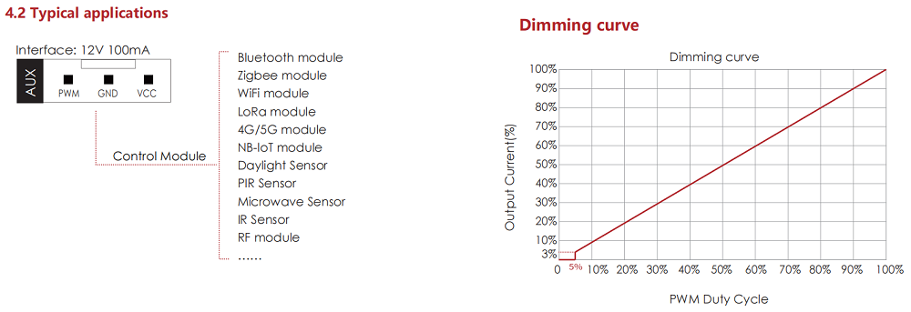 Medtem pa vmesnik AUX odlično podpira tudi različne module zaznavanja okolja in proženja. Kot so senzor dnevne svetlobe (senzor dnevne svetlobe), senzor PIR (infrardeči senzor človeškega telesa), mikrovalovni senzor (mikrovalni senzor), IR senzor (infrardeči senzor), RF modul (radiofrekvenčni modul) itd. To omogoča napajalniku K24, da inteligentno zaznava spremembe svetlobe, gibanje ljudi ali predmetov in prejema posebna navodila za daljinsko upravljanje. Zagotavljanje trdne podlage za doseganje avtomatiziranega nadzora na podlagi okoljskih pogojev (kot so pametna razsvetljava, varnostna povezava in strategije za varčevanje z energijo) ali prilagojene uporabniške interakcije.