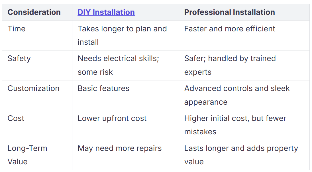 Pridobitev strokovnjaka stane več, vendar vam nudi strokovno pomoč. Strokovnjaki uporabljajo dobre materiale in poskrbijo, da so vaše luči varne. Opravijo lahko težka dela in dodajo posebne funkcije.