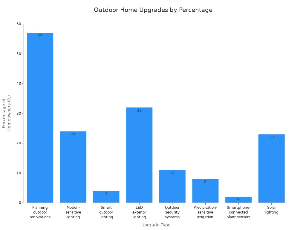 Pametna tehnologija olajša uporabo zunanjih led luči. Svoje luči lahko upravljate s telefonom ali glasom. Mnogi sistemi vam omogočajo nastavitev časa za vklop in izklop luči. To pomaga varčevati z energijo in ohranja vaš dom varnejši. Prav tako lahko spremenite, kako svetle ali barvite so luči.